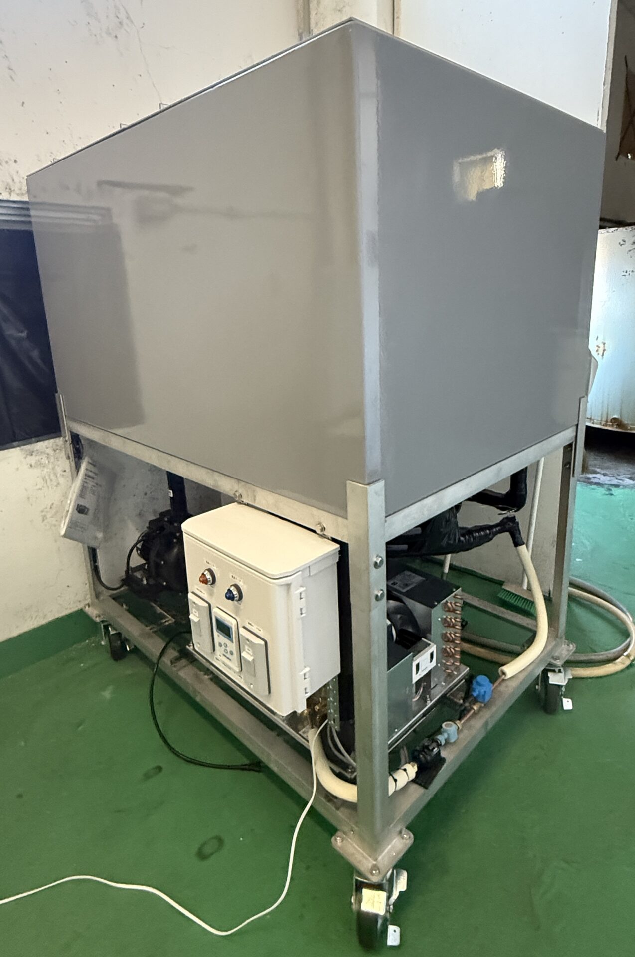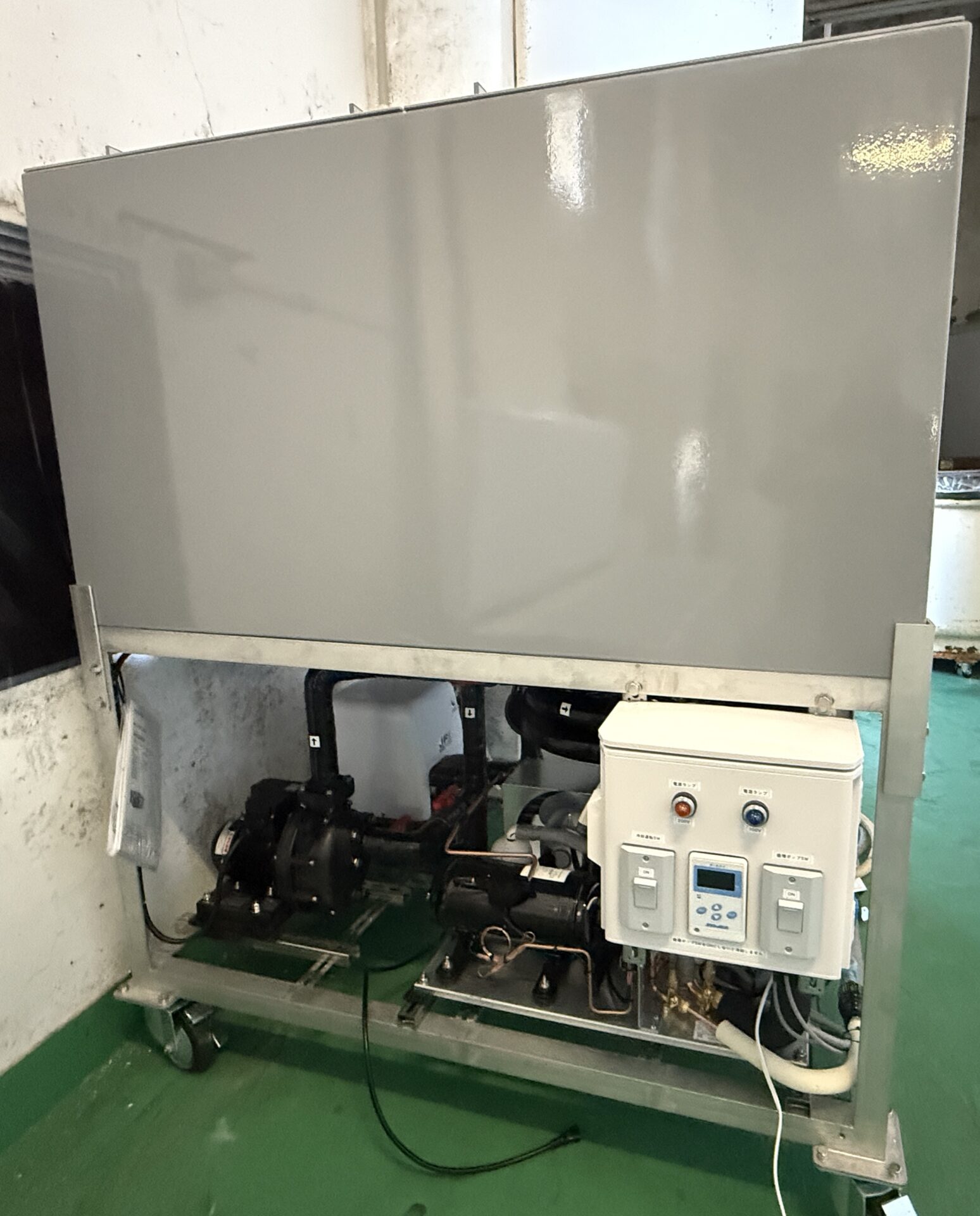 - チラー:水などの液体を冷やして循環させ、その液体を使って装置や工程を冷やす(空調用の冷水源としてビル空調に使われる場合もある)。