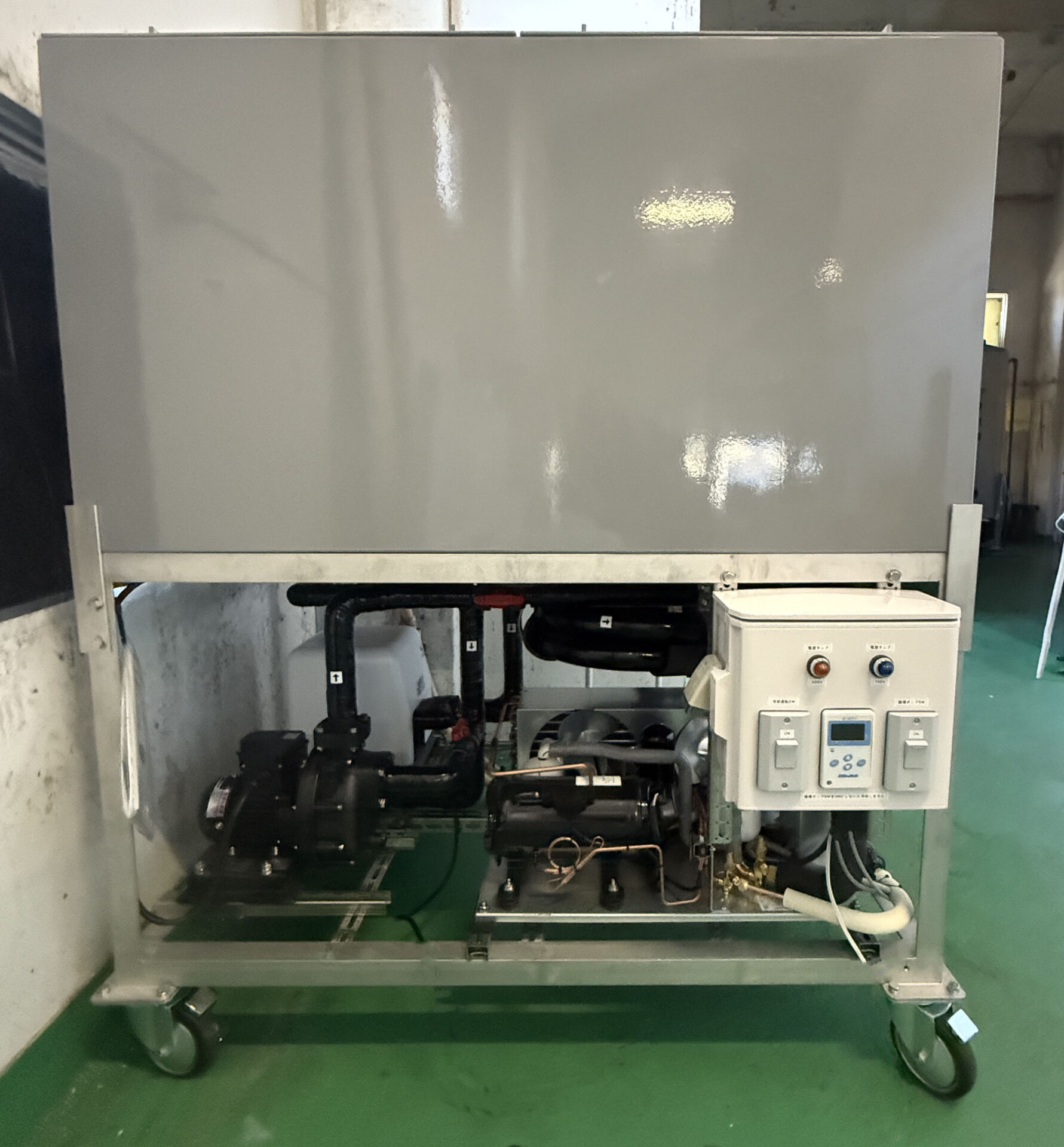 「水を一定温度に保ちながらグルグル回して、いろいろな装置を冷やす(または温める)ための温度調節用の水タンク+冷凍機のセット」と考えるとイメージしやすいです。